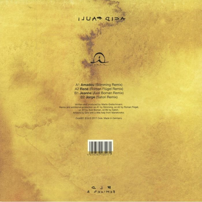 Acid Pauli's album BLD dropped earlier this year and was a superb reminder of Martin Gretschmann's unique place within the electronic music. Breathing musicality and adventurousness into everything that he does, the album covered a number of moods and emotions, from dystopian carnivalesque vibes to moments of high intensity, through to deep melancholia and synth laden ambience. Following on from the 'A' remix package, 'B' brings another huge selection of producers into the fray to reinterpret the originals. First up, Hamburg hero Stimming works over 'Amadou' - flipping the original, into a techy bomb. A thick kick underpins a shuffling, off kilter rhythm and beautifully treated melodics. Stimming's feel for gently pushing the dancefloor into new places shines through. 'René' is reworked by Roman Flügel, the Ongaku/Klang/Playhouse boss whose influence on the European electronic music scene has been immense. Always willing to experiment, 'René' is the perfect canvas - arpeggiated blips and beeps echo primitive electronic explorations by the likes of Francis Bebey, and a huge subby kick drum take this track into space. Alex Boman sets to work on 'Jeanne', locking into his signature groovy, tribal approach to working the dancefloor. The Swedish producer adds dubby elements, an irresistible percussion track and disruptive, random sounds to the thick, heady mix. Dutch wunderkind Satori tackles 'Jorge' - twisting the original into a psychedelic groover that finds room for backwards vocals, marimba-like melodies, fat basslines and shuffling breakbeats.