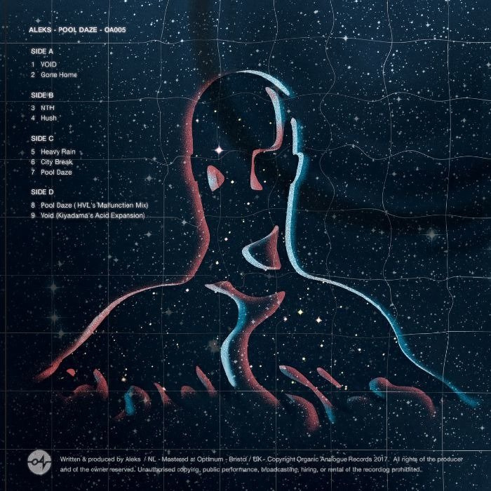 Dutch producer Aleks makes the leap to the album format for the ever-crucial Organic Analogue label, showcasing the breadth of his smoky sound from the gorgeous ambient opening track "Void" to the deep tracking tech-dream of "Gone Home". There are some spicier moments to be head, such as the rugged workout "NTH" and the upfront, rolling house thrust of "City Break", but these moments are still smoothed out by a fog of woozy processing, lingering pads and dusty FX that give the whole record a somnambulant quality that feels right at home amongst the standout material that Organic Analogue is rightly celebrated for.
