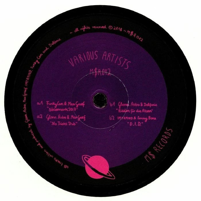 Various power. Funkycan aka Am Kinem teams up with Max Gee for the A1, a technotrack made with a DR-550 and the crumar performer. Up next is a fast dub by Glenn & Max,one for the heads. The B-side starts with Glenn Astro's & Delfonic's Riddim followed by the darker "D.i.D" produced by IMYRMIND and Lonny Benz. Happy 2018.