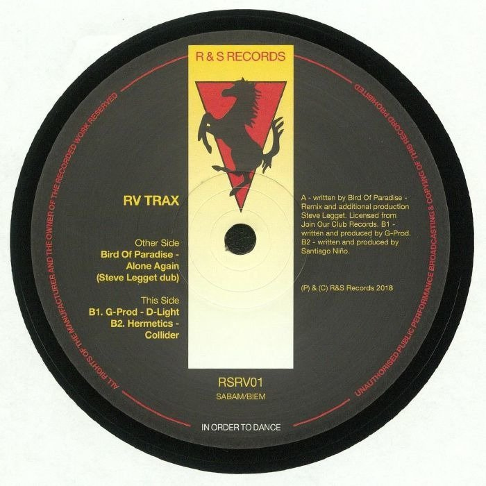 R&S founder Renaat Vandepapeliere launches a new series RV Trax, to reflect the sound of his DJ sets. Re-invigorated and inspired by contemporary dance floor sounds, after 30+ years as the label owner and figurehead Renaat succumbed to the temptation to finally, at the tender age of 60, try his own hand at rocking the crowd. Renaat’s sets have seen him assemble a treasure trove of unreleased music that will now find a very personal home on RV Trax. Emblazoned with the Belgian national colours of black, yellow and red these tracks proudly flaunt their ‘floor-filling dynamics. The first, a dance floor stormer from Steve Legget, remixing fellow North Easterners Bird Of Paradise’s original - a tight punchy workout that pairs distorted 909 kicks against a high tension string part and melancholic synth pads. G-Prod (AKA French brothers David and Nicolas Gaugain) provide a balmy, motor-city style number - shuffling drums underpin sunrise synth washes and euphoric melodies. Buenos Ayres’ Hermetics provide a frostier mood with ‘Collider’ - chilly FM bells pinned against serrated percussion and swirling distortion.