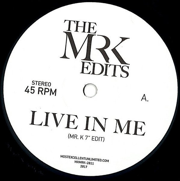 The seventh 7-inch in Most Excellent Unlimited's series of Mr. K Edits combines a pair of lush midtempo modern soul gems, with both sides textbook candidates for a perfect set-opener. "Live In Me," from Rufus and Chaka Khan's 1979 Masterjam LP, was never released as a single, but that didn't stop it from becoming a fan favorite and warm-up classic for soulful DJs. Composed and produced by the legendary Rod Temperton and Quincy Jones, who were fresh off the completion MJ's Off The Wall when this was recorded, "Live In Me" is judiciously extended here by Danny Krivit without losing any of the graceful magic of the original.Philly jazz-funkers Pieces Of A Dream get another respectful Krivit extension on the flip side, with their gorgeous "Warm Weather." Written by maestro Dexter Wansel and featuring Barbara Walker on lead vocals, the laid-back pulse of this smooth '81rare groove mainstay has never fallen out of favor with DJs who understand the power of gentle persuasion.