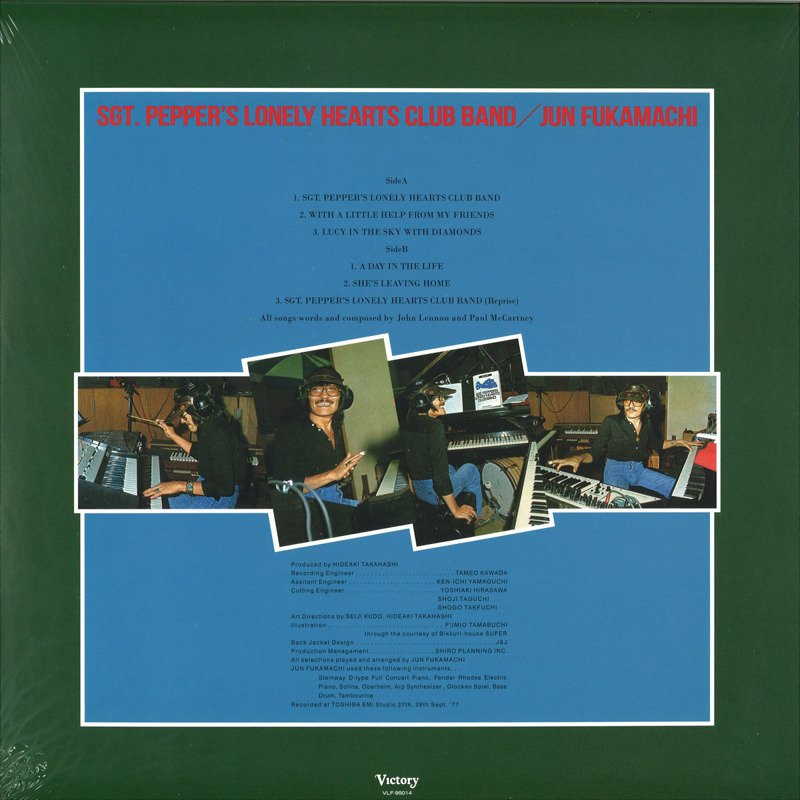 This superbly crafted recording features the versatile Japanese jazz/fusion keyboardist Jun Fukamachi as a veritable one-man band in a lively album that captures the essence of the original Beatles' tunes throughout. The innovative arramngements of the artist, tailored to get the maximum benefit from a surrounding instrument array, produce one of the best technical efforts. Synthesizer effects provide special flavor,' particularly at the close of Lucy In The Sky With Diamonds' on side one, and in the evocative opening of She's Leaving Home' on side two. Fukamachi blends a concert grand electric piano, Arp synthesizer, glockenspiel, bass drum, tambourine and other electronic instruments with results that indicate a group, not a solo, with ample display of each. Recorded ten years after the original, in 1977, this recording still sounds exciting, and an eye-catching cover with a mirror image of the famous photo shoot remains one of the most creative reworks of this 50 years old masterpiece' (Billboard)