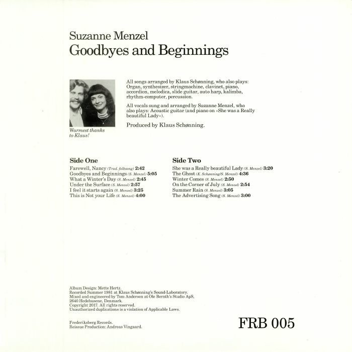 Menzel’s voice is as timeless as her heartfelt, somber lyrics. While Schønning’s synthesizer, organ and rhythm computers offer a playful contrast. The beautiful tension between them creates a fresh, unique sound and makes “Goodbye’s and Beginnings” hard to categorize even today.