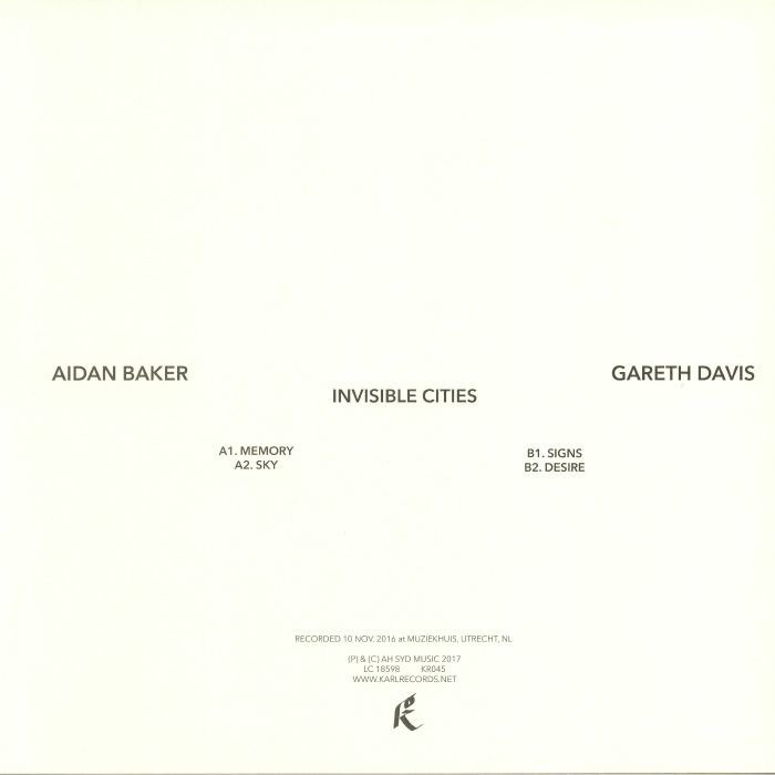 “Invisible Cities”, the first collaboration between AIDAN BAKER (NADJA, B/B/S) and bass clarinetist GARETH DAVIS (OISEAUX-TEMPÊTE), offers finest ambient / chamber jazz / subtle drones of a highly meditative quality.