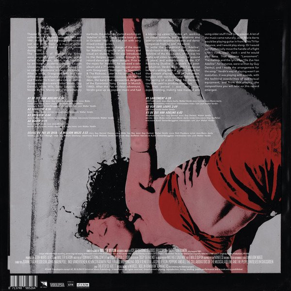 The members of Theater De Kreet were originally part of a bigger group called Grasgroen, which was founded by art history students from the Leuven University. The collective mainly focused on so called ‘animations’ in the public space. After a while, Grasgroen split into two different groups (theatre and performance), and Theater De Kreet came into existence. Its core members were Walter Verdin, Guy Dermul, Hilde Wils, Gaby Geysens and Nicole Boffin. Mainly using improvisatory methods, the collective started working on 'Adeline' in 1979. The premiere took place in October 1981 and was met with very mixed critical reviews. Walter Verdin was in charge of the music for 'Adeline'. Originally an art history and visual art student, Verdin was introduced to the Belgian music scene through his record sleeve and poster designs. Prior to the music for 'Adeline', he released a solo album and a 7” white man reggae project with Grasgroen ('Storingen' by Specimen & The Rizikoos). Later in his career, he had his biggest commercial success with Pas de deux, the band... more
