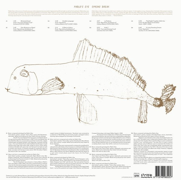 "Pablo’s Eye is the science of studio pressure, when engineer becomes artist. Appropriating left and right as well as front and back, Pablo’s Eye uses the mixing desk to examine and exhaust the possibilities of moments. Pablo’s Eye is a record of that examination and exhaustion, but it is also a record of its own inner space. By means of depth placement, psychoacoustics and spatial fug, Pablo’s Eye is experienced in the deeper reaches of the body, bypassing the conscious part of the mind entirely.