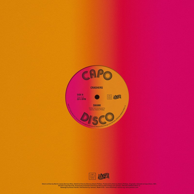 Emotional Rescue and Jamwax return to Capo Disco with the first official release of a holy grail Caribbean disco sound. Fully licensed and remastered, there is no now requirement for badly pressed rip offs. While little is known about The Crashers, all leads point to an incarnation of the revolving house' band of Glen Adams. As often the case, the floating nature of Jamaican born labels, rhythm sections naming and renaming to fit occasions was endless. Running out of his Brooklyn studio, the otherwise known Outerlimits, Capo & The Crew or even possibly Crashers, the swinging reggae meets funk grooves are apparent. Led from the desk by label owner, producer and writer, Glenroy Adams and co-created a 12' that covers bases in one release.