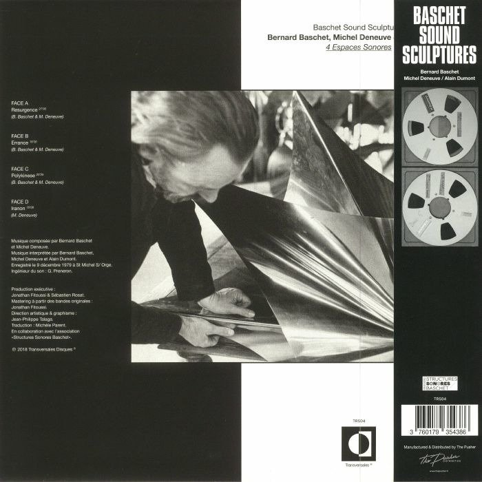 Rare 1979 recording of Bernard Baschet performing his musical invention on Espaces Sonores, now newly remastered. Baschet collaborated with his brother Francois on creating sound sculptures and inventing musical instruments, such as the Cristal Baschet. Bernard was an engineer, Francois was a sculptor. The brothers invented the inflatable guitar, the aluminum piano and many other experimental musical instruments. in 1977, Bernard met Michel Deneuve, a musician who joined them and started a new association - assisting in the creation of instruments. Deneuve was especially dedicated to working on it and has devoted himself to playing since 1975. He studied and developed a technique of playing that opens other horizons to this unique instrument. Alain Dumont worked with both Bashcet and Dumont on the LP.