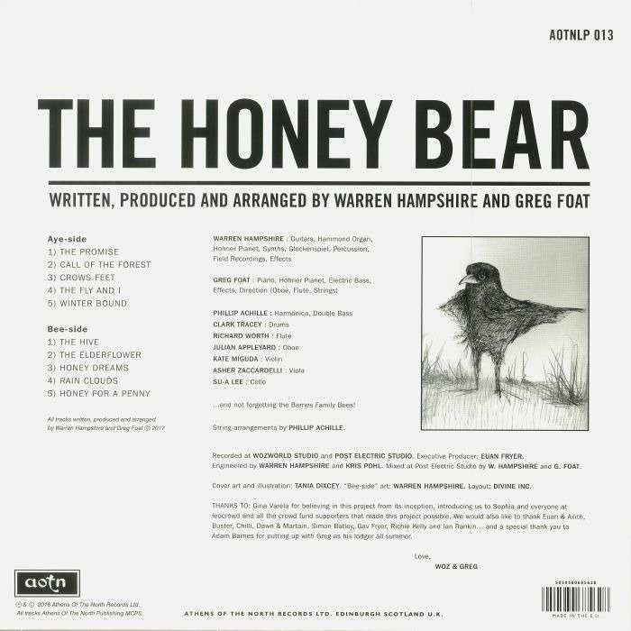 After the success of ‘Galaxies Like Grains of Sand’, Warren and Greg retreated back to the Isle of Wight to start work on long discussed concept album based on a fictional children’s book The Honey Bear. Each track a chapter of the book, hypnotic folk pieces mixed with ambient field recordings that Warren and Greg collected around the beaches, cliffs and gardens of the island. They brought everything together at home, organically forming this beautiful ambient folk tale during the island’s idyllic summer evenings. After finishing the initial mixes on the island they brought the tapes up to Scotland and overdubbed with Strings, Oboe and Flute. Whether your 5 or 50, the charm and beauty of The Honeybear is undeniable, Children fairytale book concept album Limited Edition pressing.
