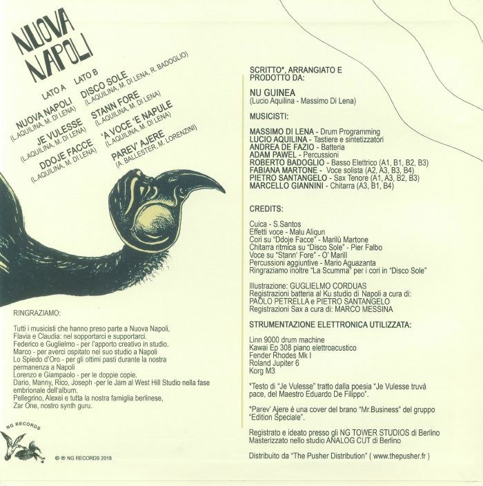 NUOVA NAPOLI is the result of a long musical research that has become a historical investigation on the sound that shaped Napoli during the '70s and '80s, starting from the contamination of genres (disco, jazz-funk, African rhythms) which ended up in Nu Guinea's DNA.