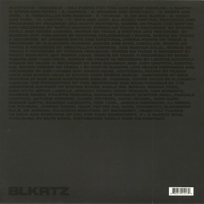 The album began with the simple idea of asking friends from across the globe for messages of hope. No musical input was provided before hand, and each participant was free to interpret the request as they saw fit. Though some of the names involved will be familiar to electronic music listeners (Gudrun Gut, Thomas Fehlmann, Mike Shannon), the common thread linking all of them is their friendship with Monteith and the many hours he has spent enjoying their company over the years. As so often happens when good conversation is shared among good friends, the results are as surprising as they are inspiring, spanning original prose, dialectic word games, and timeless quotations in six languages. Each song on the album was then composed around the content received, and named after the people who did the speaking. Ranging from the overtly political to the tenderly inspirational and many points in between, Wax Poetic For This Our Great Resolve provides verbal expressions of hope as diverse and rich as the experiences of the people who so generously delivered them.