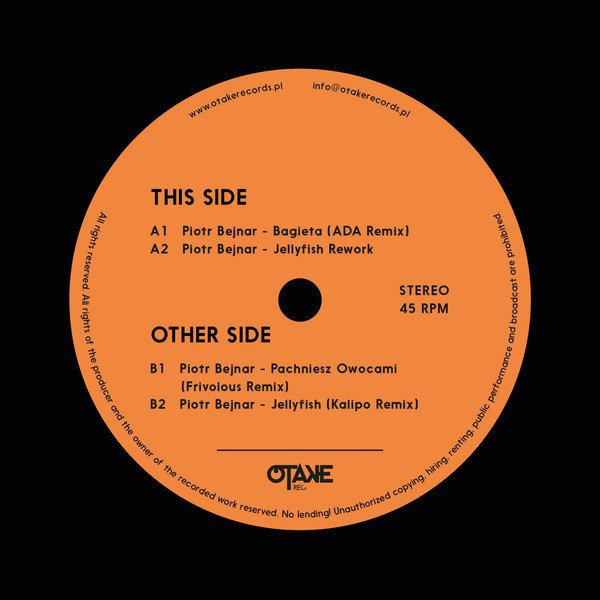 12 months after the debut album of Piotr Bejnar was released, we achieved gathering 4 remixes from this album. Piotr turned to the artists he most admired and who stated for him as great authorities. The record starts with a beautiful remix of the song "Bagieta" made by Ada from Pampa records. Second song on is a dance version of the "Jellyfish" song made by Piotr Bejnar himself. The third artist on the records is Piotr's authority Frivolous. To this one Piotrs' stood up to since childhood as a long- term fan of Frivolous, buying his albums and tracking his path. And now as for the crowning of the record - stands an artist closely related to Otake records - Kalipo.