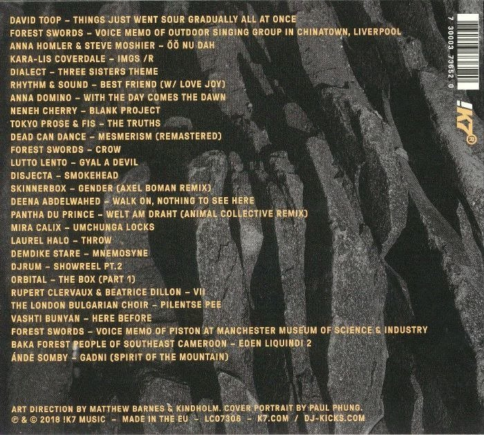 Since mood, atmosphere, emotion and a left-of-centre approach have always been the hallmarks of Forest Swords' own productions, you'd expect to find a similar emphasis on this DJ Kicks excursion. Predictably, he's done just that, conjuring up a heady, constantly surprisingly musical journey that somehow manages to draw together many different stylistic elements whilst still making perfect sonic sense. There's not enough room to go into all of the eyebrow-raising twists and turns, but expect a mix of field recordings, neo classical, 1970s electronic experiments, the dub-wise reggae of Rhythm & Sound, out-there jazz-funk, Cameroonian water rhythms (really), haunting Bulgarian choirs, post-punk pop fuzziness, contemporary leftfield techno, pastoral folk songs and a dash of mid-'90s Orbital.