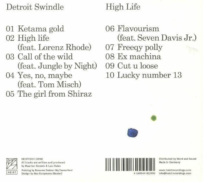 If your fame is built on delivering rock solid dancefloor cuts, should your debut album stick to the same approach or mix it up a little? It's a conundrum that many artists have struggled with over the years. Smartly, Detroit Swindle has decided to hedge their bets with High Life. As debut albums go, it's a bit of a peach, and sees the acclaimed Dutch duo flit between sensuous, home-listening fare, jaunty, instrumental-laden workouts (see the cheery, smoky pop-soul of Tom Misch hook-up "Yes, No, Maybe" and Afro-fired bounce of "Call of the Wild" featuring fellow Dutch combo Jungle By Night) and tried-and-tasty club tracks (Seven Davis Jr collaboration "Flavourism", the driving disco-house of "Freeqy Polly" and "Cut U Loose").