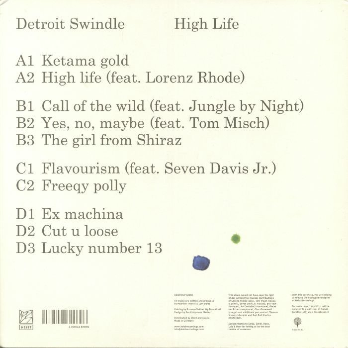 If your fame is built on delivering rock solid dancefloor cuts, should your debut album stick to the same approach or mix it up a little? It's a conundrum that many artists have struggled with over the years. Smartly, Detroit Swindle has decided to hedge their bets with High Life. As debut albums go, it's a bit of a peach, and sees the acclaimed Dutch duo flit between sensuous, home-listening fare, jaunty, instrumental-laden workouts (see the cheery, smoky pop-soul of Tom Misch hook-up "Yes, No, Maybe" and Afro-fired bounce of "Call of the Wild" featuring fellow Dutch combo Jungle By Night) and tried-and-tasty club tracks (Seven Davis Jr collaboration "Flavourism", the driving disco-house of "Freeqy Polly" and "Cut U Loose").