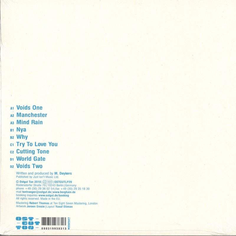 Martyn's last physical album came out all the way back in 2014, when the term 'post' had still yet to gain notoriety and a meaningful relevance to the music industry. It is now 2018, and it's clear that Martyn, the Dutch bass legend, has a new story to tell, and it's thanks to Ostgut Ton that he's able to tell it. Voids is a magnificently deep and treacherous LP, often relying on abstract shapes to give the techno its edge, much like on "Voids One" and the following "Manchester". Aside from the beatless thrills, though, Martyn drops an impressive amount of hybrid burners, such as "Mind Rain" or "Why" - both representative of the blending of sounds that has taken electronic music by the scruff of the neck. It's a more pensive, more exploratory Martyn, and we love it.