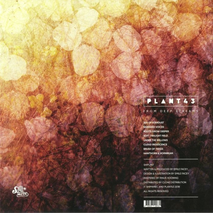 Emile Facey (Plant43) has been at the forefront of electronic for more than twelve years. During that time the British producer has released on a host of seminal labels, expanding his style and sound in new directions. Although Plant43 is typically classified as a purveyor of electro, behind those driving rhythms and steely percussion a tenderness has always been present, an emotion expressed in lilting melodies and complex harmonies. It is these melodies and harmonies that come into focus on Plant43's debut ambient album. On "From Deep Streams" is a rich and textured tapestry of synth work, a soundtrack that organically unfurls from nightime woodland walks and city stargazing to mindful solitude. The eight tracks offer the listener a calming journey into stillness, an excursion through gentle audio currents and a moment to pause and take in an inspiring vista of sound. Recorded over the space of 3 months, this album gives the quiet, the subtle and the sometimes underappreciated centre stage whilst casting light on yet another side of Emile Facey's ever-evolving music.