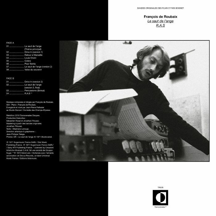 Never released before on vinyl, here comes the complete original soundtracks of French cult film composer François de Roubaix for director Yves Boisset. Two movies that embody the two sides of Francois de Roubaix’s approach to recording. For Le Saut de L’Ange (1971), the self-taught composer wrote an orchestration for some fifty musicians playing strings, woodwinds, brass and percussion with two distinct solo instruments alternating the main theme: Indian Sitar on the one hand and accordion on the other. This beautiful score creates the seam that binds Bangkok to Marseille, the two places where the action takes place. R.A.S (1973) was recorded on a 8-track tape recorder, in François de Roubaix’s home studio rue de Courcelle, where most of his 70’s scores were recorded. The result is a mix of military-march rhythms, rolls on the snare-drum with sounds of Synthi AKS syntheziser: de Roubaix invented a modern sound for this contemporary-History tragedy.