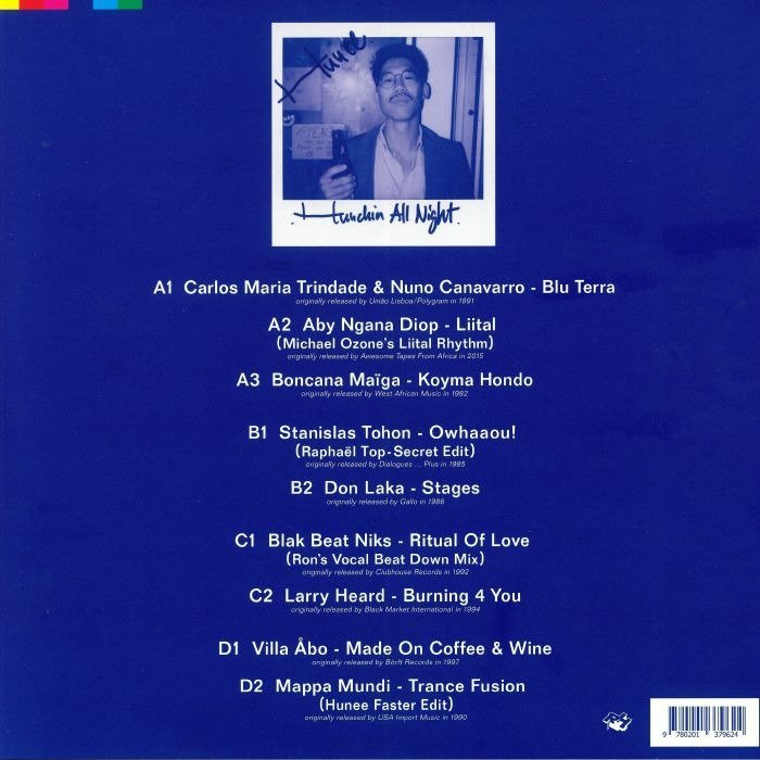Going from afro to disco to techno, "Hunchin' All Night" holds a wide spectrum of songs, tracks by the wonderful Boncana Maïga, Pat Thomas, Black Beat Niks, Kenny Larkin, Larry Heard, Mappa Mundi and many more.