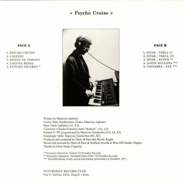 Psychedlic Electronica on this new Fututibile release (Sublabel from Periodica). Icio Omegha's "Psyco Cruise" is a collection of songs and private recordings made between 1984 and 1991 in his studio on the island of Stromboli. Icio Omegha, formerly known as Maurizio Aghemo, is a guitarist, a sitarist and keyboard player who was a member of a world music band active in the late 70s (UCO, Universal Condition Orchestra). Maurizio today is a record collector and painter who runs his art gallery in Stromboli where he exhibits his works. Currently engaged in the assembly of a modular system, he continues to produce experimental music on the island. Over the years, he has explored various musical genres, from ethnic music with an Indian flavor, up to the typical electronic digressions of the mid 80s. The only available source of these recordings are original cassette tapes from which Futuribile made this selection. A Small selection with pieces that best describe his artistic career. The audio was cleaned, re-mastered and edited to make the best possible presentation of these unique recordings of Icio Omegha who is finaly able to share them with the public. Recommended!!!
