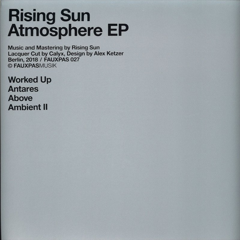 Atmosphere EP is Rising Sun`s fifth release on Fauxpas Musik and we can say quite safely that Steffen Laschinski fueled a few identifiable obsessions over the years for those familiar with his work. it probably won't feel like uncharted territory when they'll hear the title-track. Vinyl tastes better.