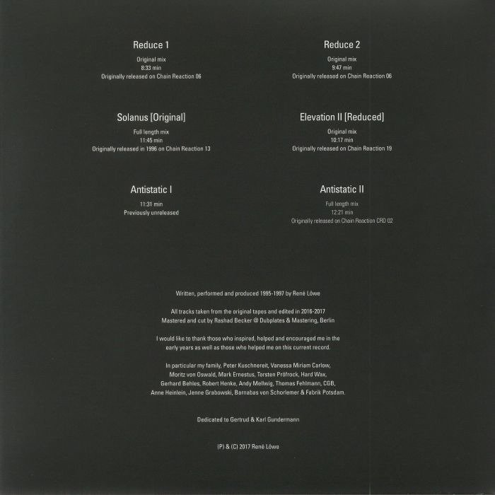 Originally out on the mythical Chain Reaction, one of Moritz Von Oswald and Mark Ernestus' gorund-breaking imprints back in the 90s, Vainqueur's Reductions 1995-1997 is back on our shelves through the active Scion Versions, and it couldn't have come at a better time! The original to this goes for big bucks now, and the reissue gives you access to some of Berlin's most genre-defining moments - arguably a primary inspiration to the likes of Shed's WAX and EQUALIZED projects. This is pure, solid, 100% dub-techno direct from the source, so there's absolutely no fake shit inside, and each one of these killers is bound to work wonders on the dancefloor. Hypnotic, driving, refreshing...you name it, Vainqueur is the classiest techno boss about. BIG.