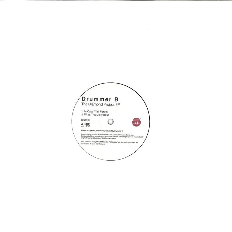 Drummer B brings some fresh Detroit heat to Transmat on 'The Diamond Project'. He sounds like "the corner of techno and hip-hop" and feels deeply in touch with Detroit urban culture. EP1 is the first of a two EP release. "In Case Y'all Forgot" reminds you that there ain't no party like a Detroit party. "What Dat Jxxy Bout", an appropriately obscene ghetto-tech track. "Again" shows the other side of Detroit soul with an extended spoken word performance by Jessica Care Moore . "Diamond," a half tempo joint or double time, depending on your groove. Center leaf artwork by Haqq of third earth visuals.