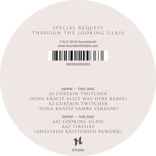 Special Request joins forces with Nina Kraviz and Anastasia Kristensen, shattering the doors of perception over a four-track EP. 'Through The Looking Glass' drops July 20th on Houndstooth.On the A side, Nina Kraviz provides two interpretations of 'Curtain Twitcher'. 'Alice Was Here Remix' takes the intensity of the original and boils it into a 4/4 spin of frenzied basslines and distorted acoustics, punctuated by her languid reading of the Mad Hatter. For the 'Samba Version', syncopated polyrhythms take charge of a fragmented melody.