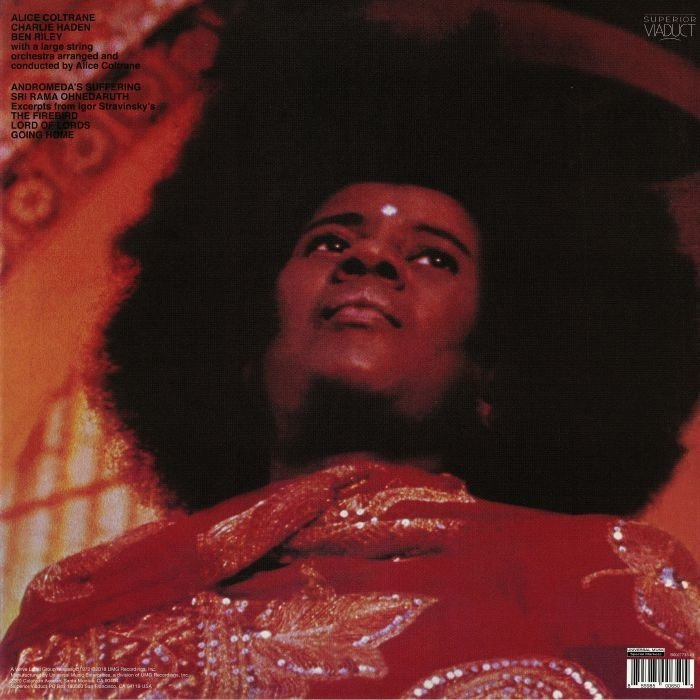 On the first two pieces, "Andromeda's Suffering" and "Sri Rama Ohnedaruth" (titled after the spiritual name for her late husband), Alice's dazzling piano and harp blend perfectly with the blanket of strings, while the haunting rhythm section of Charlie Haden and Ben Riley and a magnificent, droning electric organ emerge immaculately on the title track and closer "Going Home." Coltrane's musical vision is bold in its imagination and cosmic in scope, yet remains intensely personal and immediate. Lord Of Lords points inward as much as to the beyond, recalling her classical roots and recasting Eastern modes to radically invert the American avant-garde and spiritual jazz traditions.