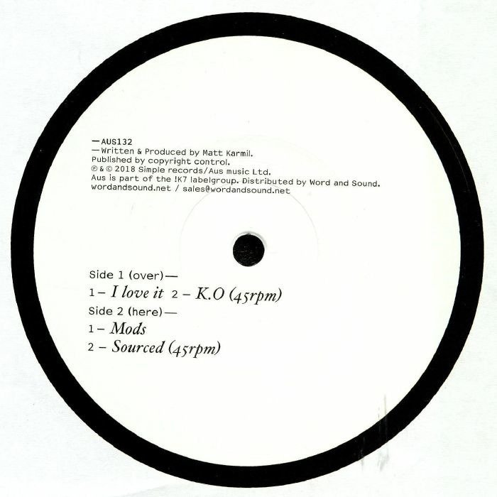 Aus Music welcome the debut EP from, Matt Karmil. The 'Sourced' EP follows his critically acclaimed 'Will' on Smalltown Supersound. Matt delivers two classily edited cuts and two off kilter deeper tracks, a perfectly balanced EP with a track for all times and moods.