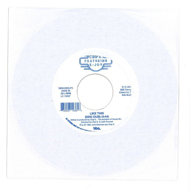 For the latest volume in their Foundations series on BBE, Kai Alce and DJ Spinna have decided to reissue one of the finest records from the earliest days of Chicago house, Chip-E's spellbinding 1985 anthem "Like This". This seven-inch edition features a fresh edit of Chip-E's original cub mix on the A-side. This version is essential largely because of the quality of K-Joy's impeccable vocal, though the re-mastered sound also makes Chip-E's crunchy Roland drum machine hits, bold synth-bass and spacey lead lines sound better than ever. Turn to the flip for the heavy and stripped-back "DDD Dub" version, which makes more use of the short "Like This" vocal, which was originally provided by the Godfather of House himself, Frankie Knuckles.
