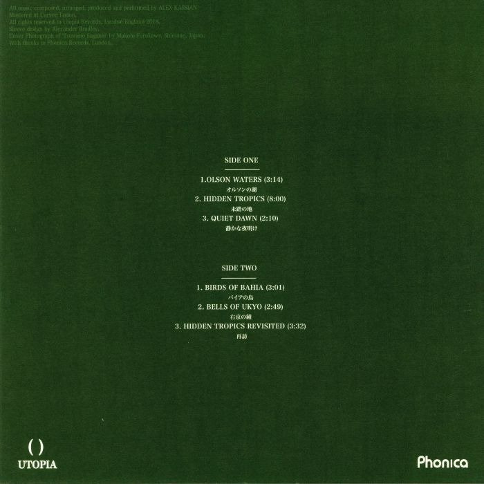 Utopia Records uncovers the work of Alex Kassian the Kyoto born Berlin based producer and DJ whose work as Opal Sunn and Al Kassian has been turning heads and shifting feet in recent times.Over the last decade Kassian hosted word of mouth dances in London and Berlin where he gained a reputation as one of Europe's most promising artists.Kassian's recent output has been primarily composing scores for contemporary dance and theatre in Berlin, an approach he brings here to this 6 track EP 'Hidden Tropics'.Kassian inspired by other Utopia Records artists such as Lars Bartkuhn and Vangelis Katsoulis delves deeper into his compositional scope for a sound that joins the dots between ambient, world music to spiritual house in parts inspired by his homeland of Japan as heard on 'Bells of Ukyo' and the 80's Sakamoto-esque 'Olson Waters'.