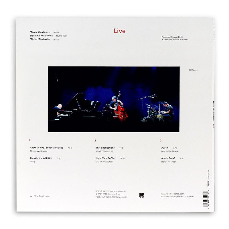 Message In A Bottle to jeden z popowych numerów zaadaptowanych przez Trio; wcześniej nagrali utwory Björk i Prince’a. Message znalazła się również na Spark of Life, ale fascynacja starym hitem The Police sięga znacznie dalej, do najwcześniejszych dni trio w liceum w Koszalinie, circa 1990. Kiedy po raz pierwszy się na niego porwali, wspomina Marcin, Sławomir grał na gitarze. „To było przed moim czasem”, śmieje się perkusista Miskiewicz, który dołączył do zespołu w 1993 roku, dopełniając jeden z najbardziej stabilnych składów współczesnego jazzu. Słuchając Live nie można pominąć głębokiej muzycznej empatii muzyków, cechy, którą The Guardian opisał jako „ich zdolność do wzajemnego odbierania i wzmacniania myśli” - ten rodzaj improwizacyjnej komunikacji można rozwinąć jedynie przez lata współpracy.
