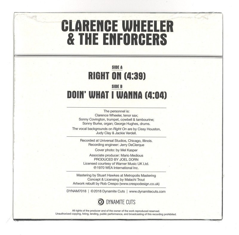 Since launching last year, the Dynamite Cuts has delivered a string of killer seven-inch singles featuring sought-after cuts from fantastic old albums and this is another must-have along the same lines. It boasts two tracks from Clarence Wheeler and the Enforcers' 1970 debut album, "Doing What We Wanna Do", neither of which have appeared on a "45" before. You'll find a riotous Hammond funk explosion rich in energetic, break-driven drumming and wild trumpet and organ solos on the B-side, with the similarly sweaty title track nestling on the A. This insatiable number is altogether deeper and looser in feel, with tasty group vocals rising above bustling drums, warm Hammond lines and punchy sax solos.