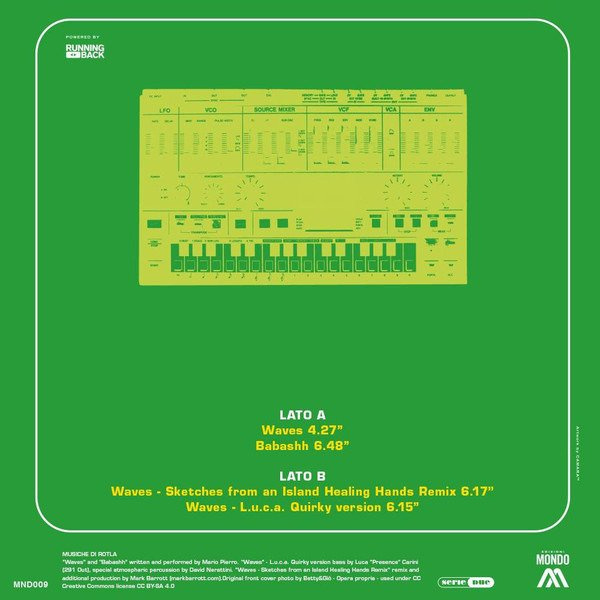 Edizioni Mondo as a label, has the goal to produce music that is descriptive of concepts, images and environments. Inspired by library music, a genre frequently used as theme or background music in radio, film and television in that very same period, the name MONDO has its roots in 'MONDO MOVIES", an Italian movie genre born in the 60's. Mondo movies are characterized by documentary-like content that addresses several topics from around the world ("mondo"). Numero nove comes courtesy of ROTLA. Also known as Mario Pierro and Raiders of the Lost Arp, 'Waves' is his third contribution to Edizioni Mondo. Downtempo, trippy, playful and pardon us, balearic, it's the soundtrack to the fading summer or the one starting somewhere else in this universe. Accompanied by remix works from label head L.U.C.A. and balearic (again!) mastermind Mark Barrott with his Sketches form an Island Healing Hands, it's the most balearic (three's a charm) record you will hear this side of the summer (wherever you are).