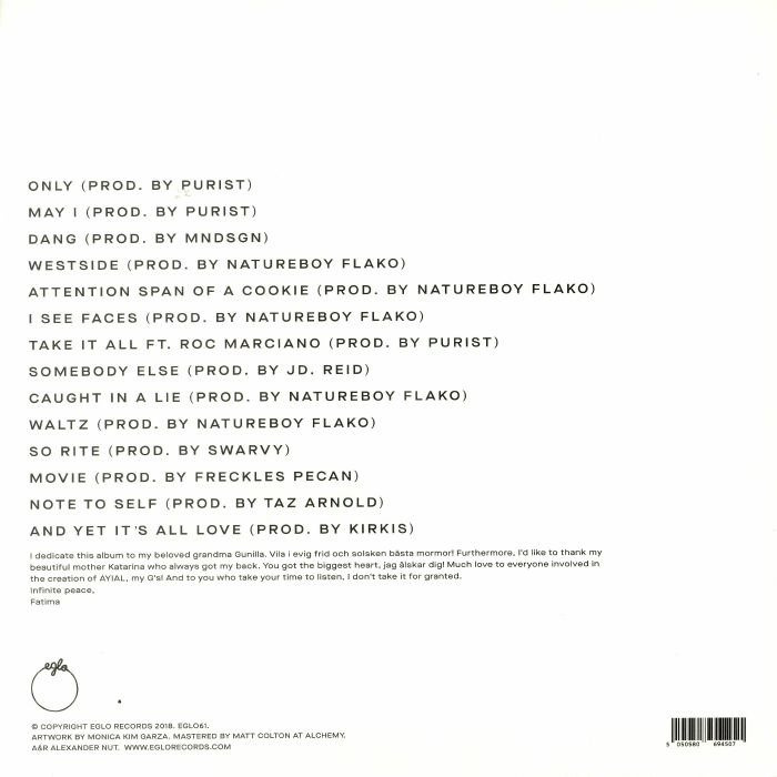 Fatima Bramme Sey has delivered some fine music over the years, but there's always been a feeling that there's still a genuinely killer album in her that's yet to come out. "And Yet It's All Love", her sophomore set following 2014 debut "Yellow Memories', could well be that set. Featuring 14 brilliant songs that variously touch on summery, sunshine-soaked soul-jazz, head-nodding, R&B-influenced modern soul, Afro-reggae (see the brilliant "Westside"), synth-laden goodness ("Attention Span of a Cookie", "I See Faces"), string-laden spoken word (Roc Marciano hook-up "Take It All"), piano-driven bliss ("Movie") and atmospheric soul-scapes (mournful "Note To Self"), it's undeniably a brilliant piece of work. It's the sort of album that could turn her into a star - and that accolade would be thoroughly deserved.