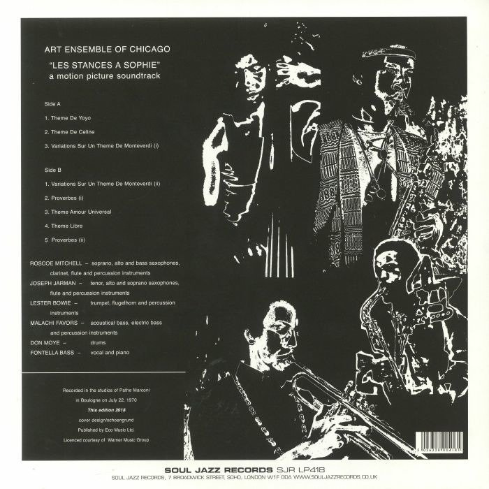 As the legendary Art Ensemble of Chicago celebrates its 50th anniversary, Soul Jazz Records are releasing a new fully re-mastered edition of the group's seminal album 'Les Stances à Sophie' (1970), which features the great singer Fontella Bass on the opening track 'Theme de Yoyo', a stunning 9-min opus that continues to startle and compel new audiences today.