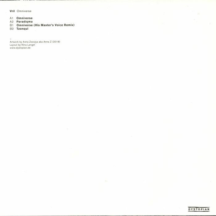 We've become used to seeing Vril's releases variously slip out on Giegling and Delsin, two titans of the underground electronic music scene. Here he flips the script, decamping to the first-rising Dystopian label for four-track, floor-focused excursion. Opener "Omniverse" is deliciously skewed and trippy, layering crackling audio textures and slipped warehouse rave stabs over a delightfully wonky, off-kilter techno rhythm. You'll find a tougher and more distorted rework of the same track on the flip. This feels heavier and more intense, despite the presence of hazy, dub techno style production values. Elsewhere, closer "Tzonqul" is outer-space dub techno with the heart of a Pete Namlook spacey ambient special, while "Paradiqma" is another trippy, left-of-centre techno workout built around broken rhythms and deep space electronics.