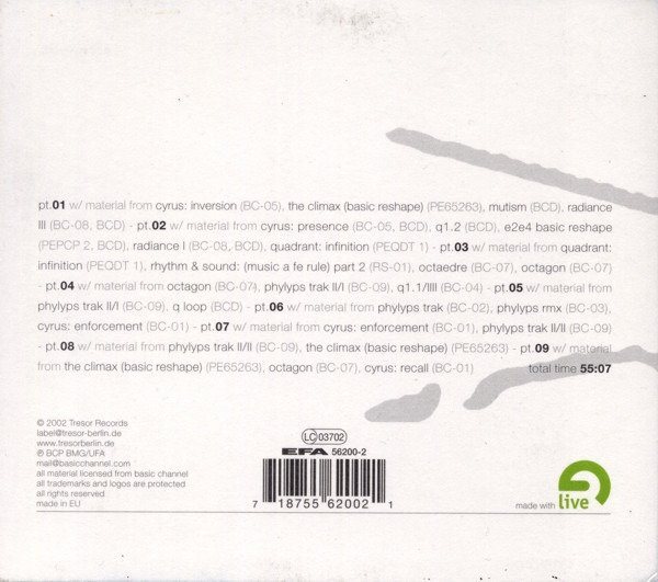 Minimalism and monotony but always fascinating, the Basic Channel sound moves every fan of futuristic music. No understanding of Berlin techno can forgo this revelatory music. This treatment from Scion draws out these beloved sounds, laying down an extended mix that strikes from the core of Tresor’s unmistakeable identity.