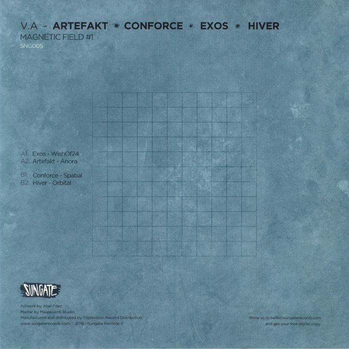 Sungate's 5th release is titled Magnetic Field #1, a V/A made up by Artefakt, Conforce, Exos and Hiver. A magnetic field can be defined in several ways based on the effects it has on its environment. In this case, the environment would be represented by the listener, and the Magnetic Field would be the record. Coincidentally, there has recently been renewed interest in the effects of magnetic fields on biological cells, so be prepared to see where this EP takes you.