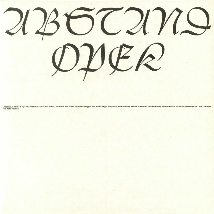 (140g) Abstand is a duo project by Martin Brugger and Simon Popp, both members of the Munich-based jazz group Fazer. On their debut 12 Opek they provide off-kilter polyrhythmic percussion psychedelia, layering live and unedited drum tracks blended with sparse electronics that add a subtle Middle Eastern tint. On the B side we're treated with a remix by Stefan Schwander aka Harmonious Thelonious. The Salon des Amateurs denizen serves us a pulsating and more club-leaning take showing why he can always be trusted with turning live percussion into bold, hypnotic jams for the perceptive clubgoer. The Munich-Duesseldorf axis has once again been proven fertile and we will likely hear more coming out of that connection.