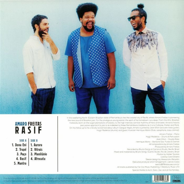 Following his critically acclaimed debut album Sangue Negro (black blood), the title of his sophomore release Rasif is a colloquial spelling of Amaro's home town. A love letter to his native northeast, Amaro explores its traditional rhythms through the jazz idiom, employing complex mathematical patterns reminiscent of some of the most challenging works by fellow Brazilian masters Hermeto Pascoal, Egberto Gismonti and Moacir Santos.