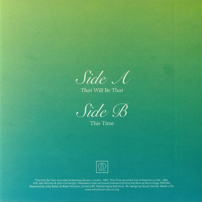 Emotional Rescue previously dived into the plush, soulful and verdant sound of Jaki Whitren and John Cartwright with the reissue of their essential International Times album back in 2013. Sadly Whitren and Cartwright passed away two years ago, and this 7" of previously CD/digital-only material materialises in tribute to these wonderfully talented souls. "That Will Be That" is an effervescent boogie jam with rich synths that interplay beautifully with Whitren's stunning vocal, while "This Time" takes a starkly opposite approach with just the most delicate of keys lingering behind Whitren's powerful, echoing vocal. It's a poignant note of remembrance for two gifted musicians who shone their light into the world.