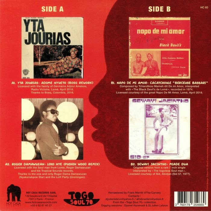 Following the critically acclaimed compilation Togo Soul 70, here comes a 12inch including a side of edits and revisited versions of original funky tracks by Yta Jourias and Roger Damawuzan and a side of rare and unreleased Togolese soul tracks from Napo De Mi Amor and Sewavi Jacintho. Bosq (Ubiquity/FaniaRecords) and DJ Pushin Wood (Loft Party, Holland) deliver a hot funky and soulful versions specially oriented for the dancefloors and the disco fans. And before the awaited release of Togo Soul 70 Vol.2 (July 2019), you can find on the B side, two tremendous soul tracks by Napo de Mi Amor ('The voice of Lomé') and the tremendous artist Sewavi Jacyntho also known as Frejus Jacyntho signed on the famous SID label in Abidjan. Soulful Music for the dancefloor and the connoisseur!