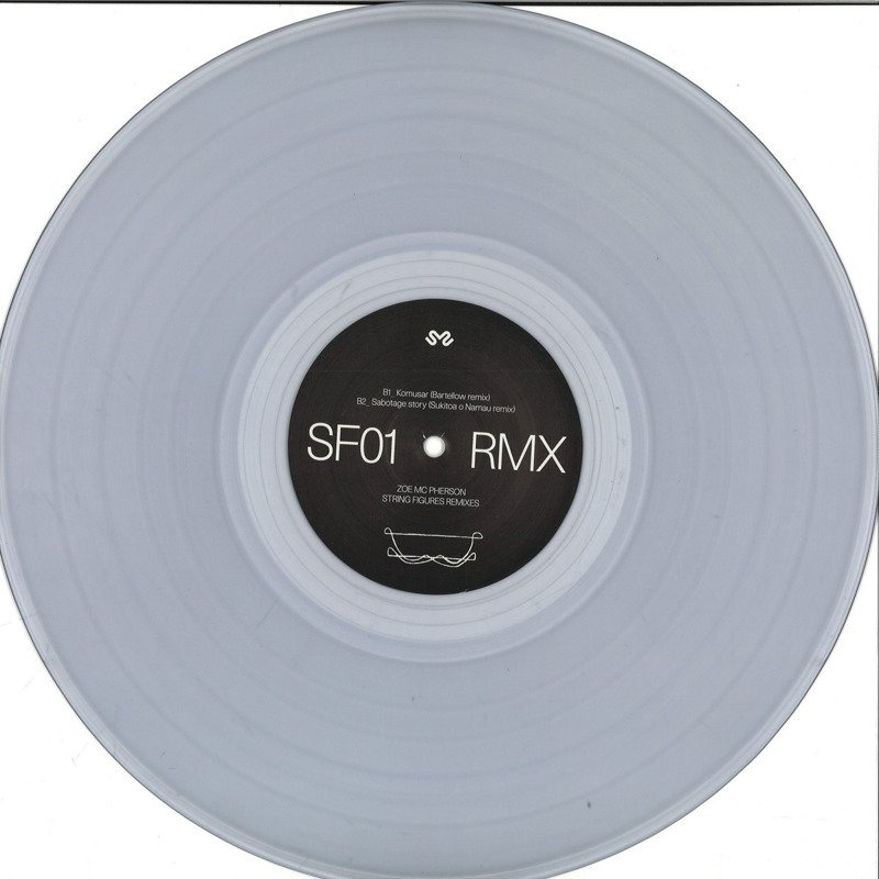 'String Figures Remixes' is a series of remixes released on December 14th 2018 following the previous-ly highly acclaimed LP String Figures by Zoe Mc Pherson. (Watch her Boiler Room live show) Remixers for this EP include Ben Vince (Hessle Audio co release w/ Joy Orbison & Where To Now solo album where collaborators include Mica Levi & Rupert Clervaux), N1L (Opal Tapes & UIQ), Hester-1, Bartellow (ESP Institute, Public Possession) & Sukitoa o Namau (First Terrace Recordings). The EP is pressed on transparent vinyl & comes along with transparent sleeve. When asked why Zoe chose each artist for her remix album she writes: Ben Vince is my mate since he opened for my release in London last April and he was really excited about making a remix. Which I think is even nicer is that he only remixed and did not play saxophone. He actually properly very much remixed all the elements, all recognisable, which is a delight to listen to when you know all the parts seperately. The only thing he did is making it a UK club banger track !!!! :) N1L is a friend whom I admire totally for his capacities of producing incredibly wicked tracks in no time. He's got 10 000 collabs going on ( abit like Ben). I don't know how he does it, but damn his remix is also one of these that are a delight to listen to when the samples are re organised in a very cool way which is his own. Hester -1 is also a friend, violinist and producer from Antwerp. She is a nerd, her style and projects are developing, we jammed together, and I wanted her to be on the original album, so now she is in the remixes and made a very dark piece and now I'm thinking she should meet N1L :) Bartellow is also a friend, behind SVS, and he was the first one to make a remix in 1 hour on a flight I think actually even before the album came out!!!! He had already made a proper groovy banger, as he always does, with his style. Sukitoa O Namau I've been chatting with since a while, she's an incredibly inspiring artist, releasing on First Terrace records, she used to be a dancer and is an explorer of sound and of many things. She basically fucked up my track, by changing the rythms into no rythms and purifying it very much which reveals other things. Only keeping rough elements of it and I think it's absolutely brilliant.