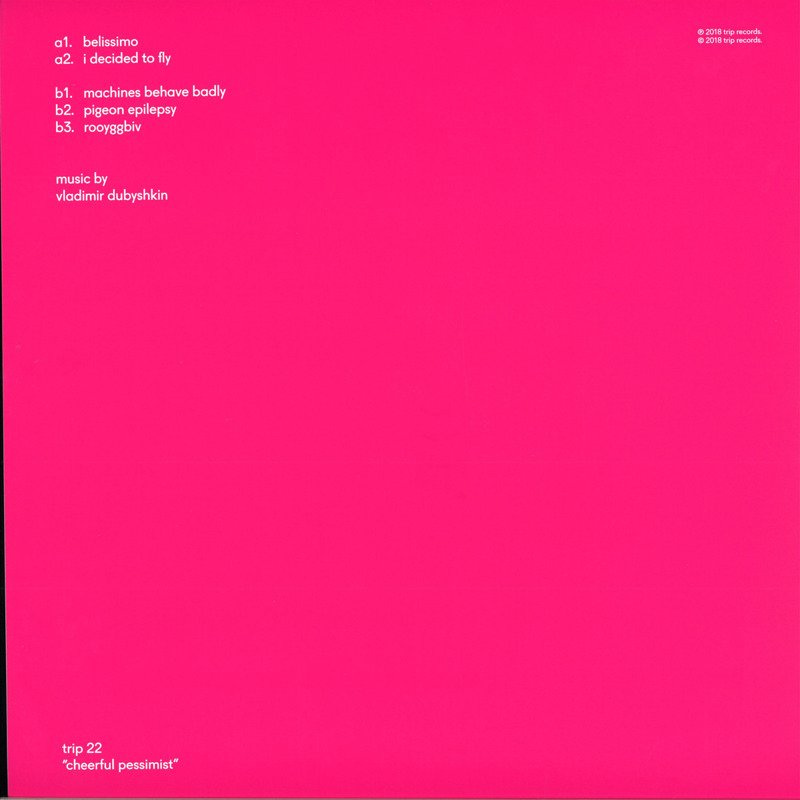 Hailing from the ancient Russian city of Tambov, on the banks of the Tsna River, the youngest member of the Trip family Vladimir Dubyshkin emerges for a potent debut solo EP. cheerful pessimist is an engaging package of highly anticipated deep, swirling techno tracks that many will recognise from label head Nina Kraviz's DJ sets. Diving straight into the core of a peak time set, Vladimir unleashes five formidable doses of unrestrained energy. Swollen sub bass and thumping percussion forge an unmistakable sense of physicality, whilst spiralling, a melodic leads run circles around the listener. Cheerful pessimist wastes no time warming up, plunging head first into the belly of the beast. A thrilling debut and an essential release for lovers of vibrant techno.