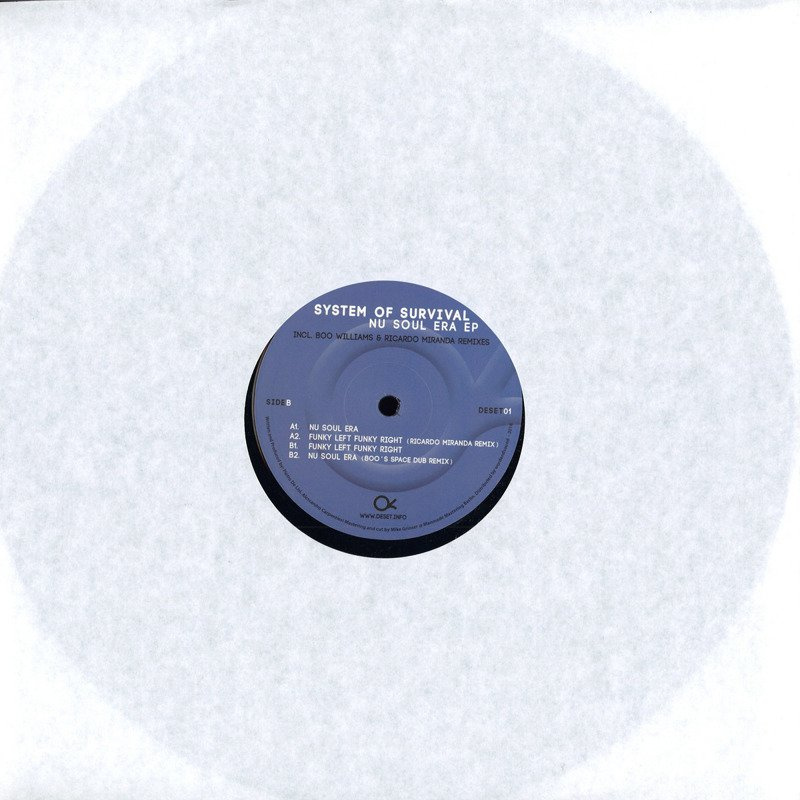 Pietro ‘Bingo’ De Lisi and Alex Carpentieri aka Italian duo System of Survival, have long been renowned for their raucous live cuts, the likes of which have firmly established their name amongst fans of discerning house and techno. Regulars at Ibiza institution, Circoloco at DC10, the boys knack for a tune has also brought them to the attention of respected label outlets such as Bpitch Control, Freak n’Chic, Moodmusic, Rawax and Get Physical. However, their latest release - released here via the emerging Deset Music - might just be their best yet. The label’s inaugural release sees the boys perk up with two stunning originals and are back by remixes from none other than two Chi-town legends, Boo Williams and Ricardo Miranda. Opening up the sounds of the release is ‘Nu Soul Era’. A raucous, deep cut that displays all that’s excellent about System of Survival, this one goes firmly down the rabbit hole in search of kicks. Characterised by its quite brilliant and catchy baseline, the action is dark and trippy throughout, with a firm emphasis placed on a groove that never lets its guard down throughout. A majestic start to the EP, it gets us underway with some distinction. System of Survival’s other original is ‘Funky Left Funky Right’. Again, the duo expertly showcase their penchant for melodic structures, this time via a bleepy baseline that’s perfectly suited to peak-time floors. Ricardo Miranda’s interpretation goes deep and off-kilter, but remains true to the original’s full-on characteristics. A stunning indication of the producer’s eclecticism and studio mastery, it’s an intoxicating take on a track ...