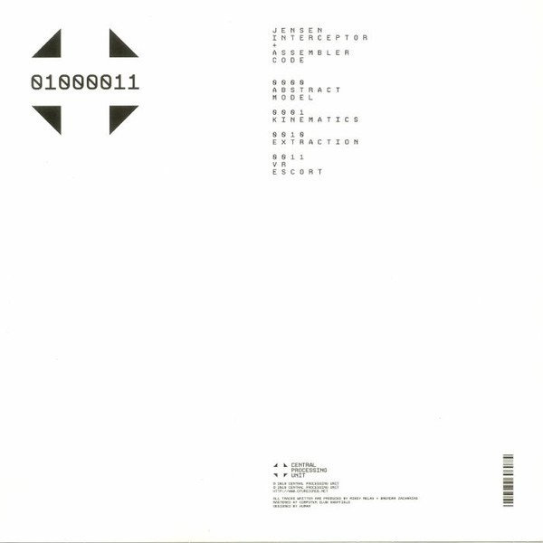 Given that Jensen Interceptor is a Central Processing Unit regular, it's little surprise to see him return to the Sheffield label with Assembler Code in tow. The two are regular studio buddies and have previously released collaborative EPs on Boysnoize, Cultivated Electronics, Private Persons and Mechatronica. This time round they're in full-on dancefloor electro mode, gleefully sprinting between dark, angular and angry fare (punishing but brilliant opener "Abstract Model"), rush-inducing peak-time anthems (the glassy-eyed, fuzz bass-driven bliss of "Kinematics"), Drexciya style workouts ("Extraction"), and buzzing, late night contortions ("VR Escort"). In other words, it's another killer collection of cuts that should be on every electro head's shopping list.