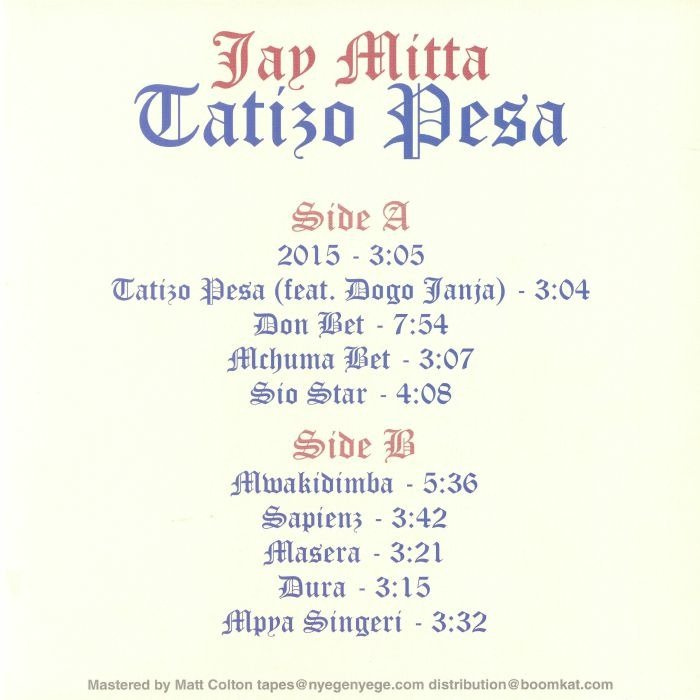 It's very hard to ignore that with 'Tatizo Pesa' Jay Mitta has produced a new and unmissable high-water mark of the ancient yet up-to-the-second East African music bound to translate directly to all willing bodies.