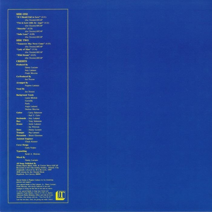 Lady of Mine is the 1989 debut LP by self-made Italian-American Joe Tossini. An astoundingly honest, passionate record of cosmopolitan lounge music, he willed this charming suburban oddity into existence without any formal musical training.